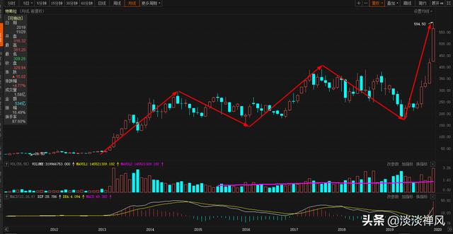 三,技术面,特斯拉现在处于月线级别的主升中的加速阶段,举例结束不远了